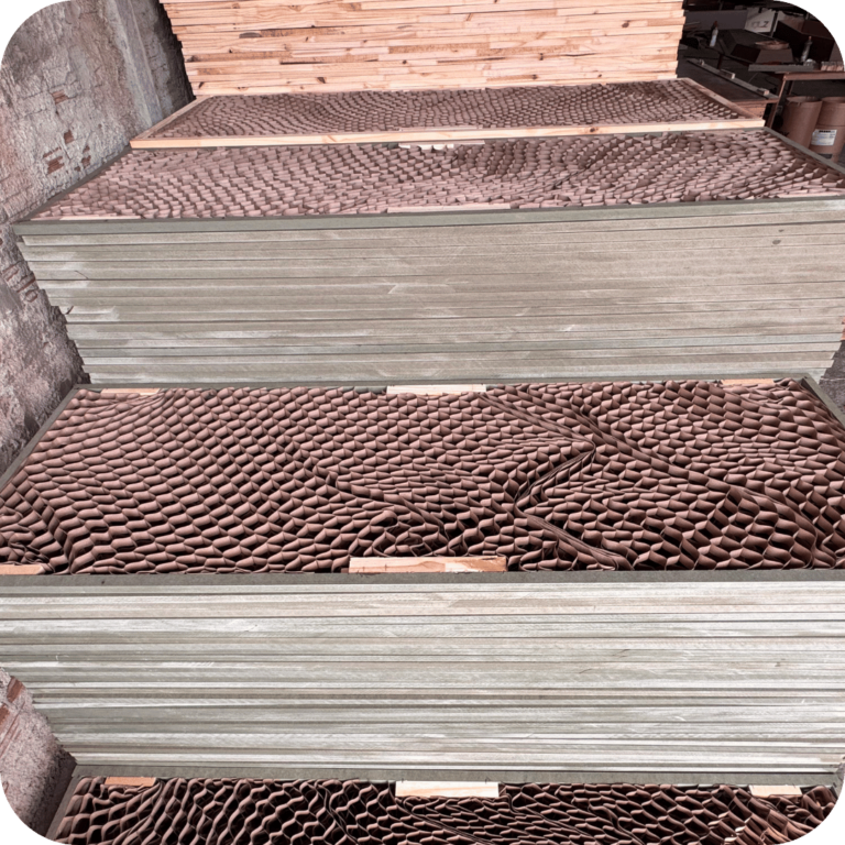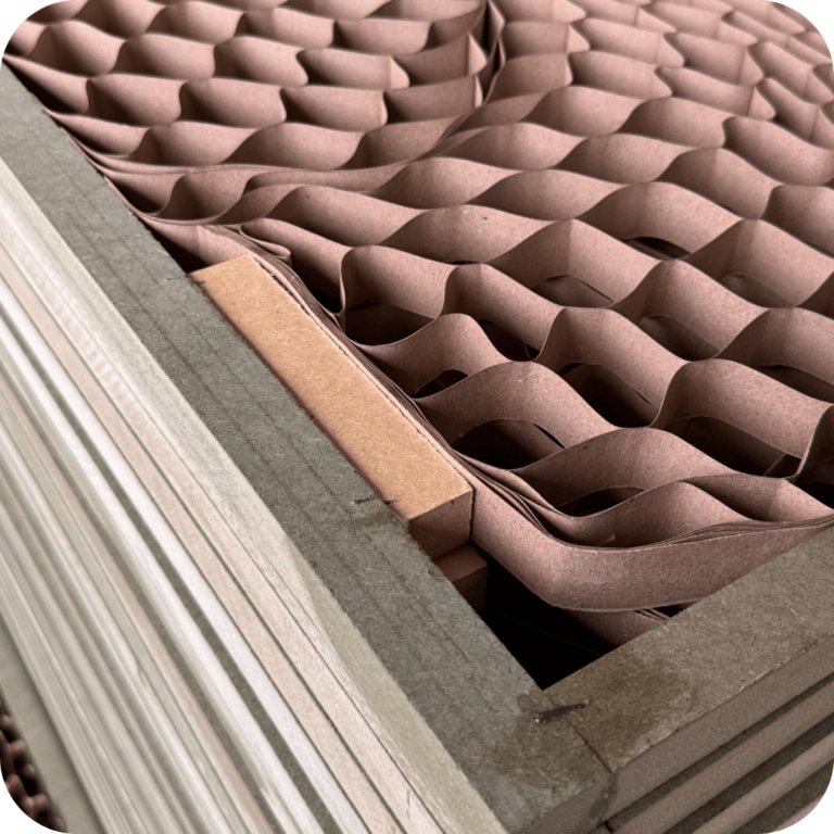 Utilizamos o sistema colmeia no interior, que alia leveza e resistência estrutural, garantindo portas robustas e funcionais.